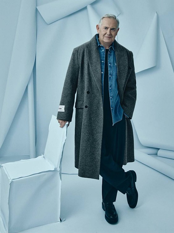 Юрий Стоянов для журнала Hello в пальто Rogov производства Futureal