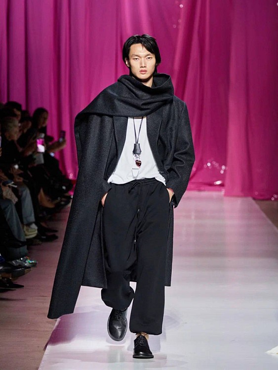 Показ Rogov на Московской недели моды 2024. Пальто из драпа производства Futureal