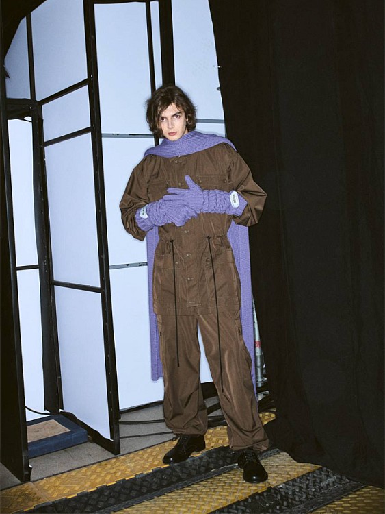 Максим Матвеев в съёмке для журнала Собака в пальто бренда Rogov производства Futureal